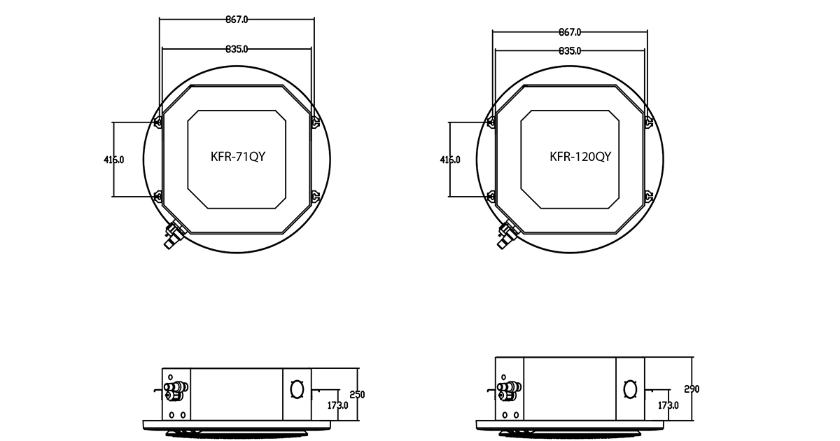 High efficiency circular coil are made of copper tubes and high exchange surface area aluminum blue fins. With built-in EEV, external EEV is optional.